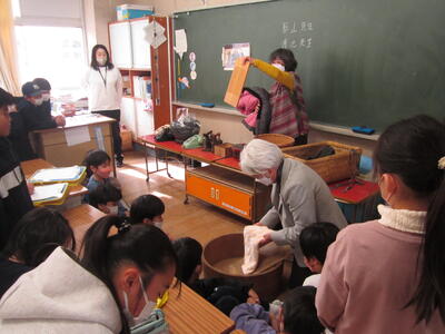 子どもたちは、昔の道具やその使い方に興味津々でした。