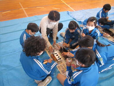 4年生は、3校交流学習としてこけしの絵付け体験をしました。