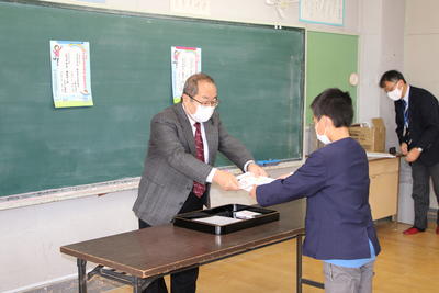 信夫地区青少年健全育成推進会長さんにお越しいただき、標語コンクールの表彰式が行われました。