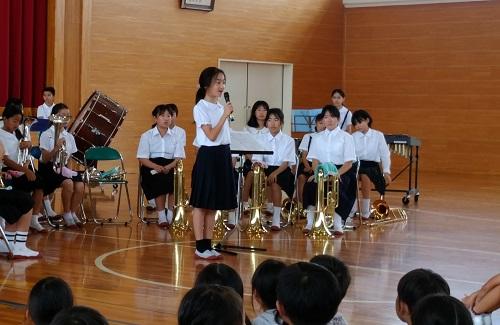 2019年9月11日 14時29分特設金管合奏部の皆さんが、全校生の前でこれまで練習してきた成果を発表しました。