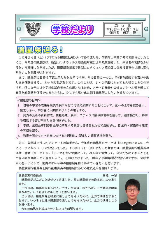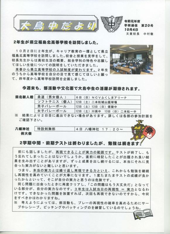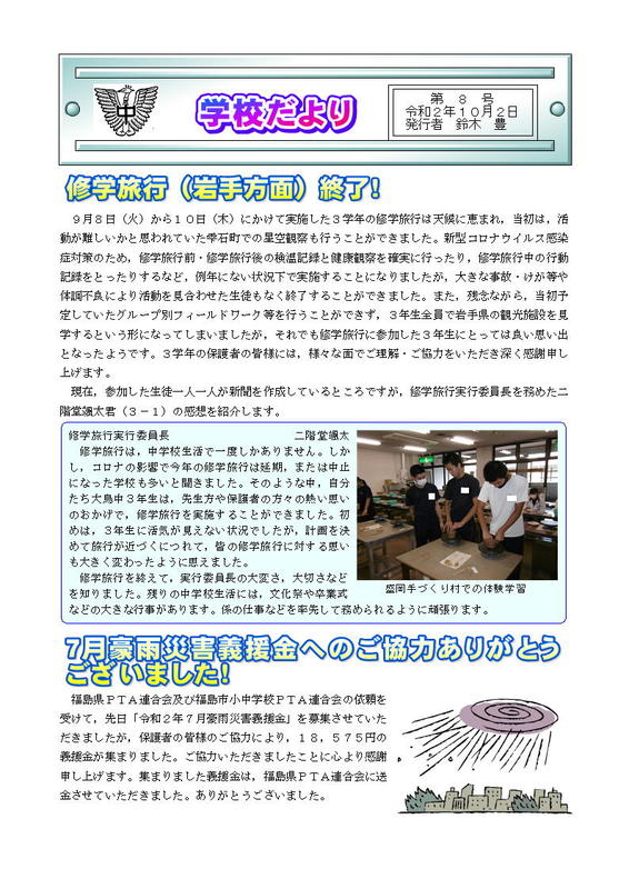 2020年10月17日 11時43分学校だより第8号