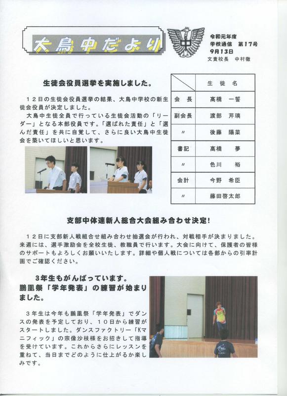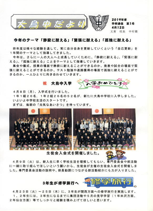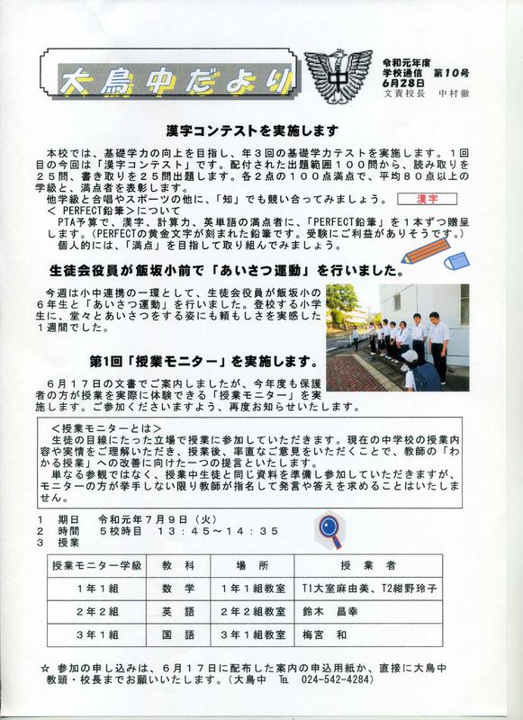 2025年6月12日 14時25分学校だより「日に新た」、1学年だよりの掲載について。どうぞご覧ください。