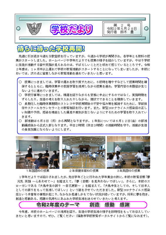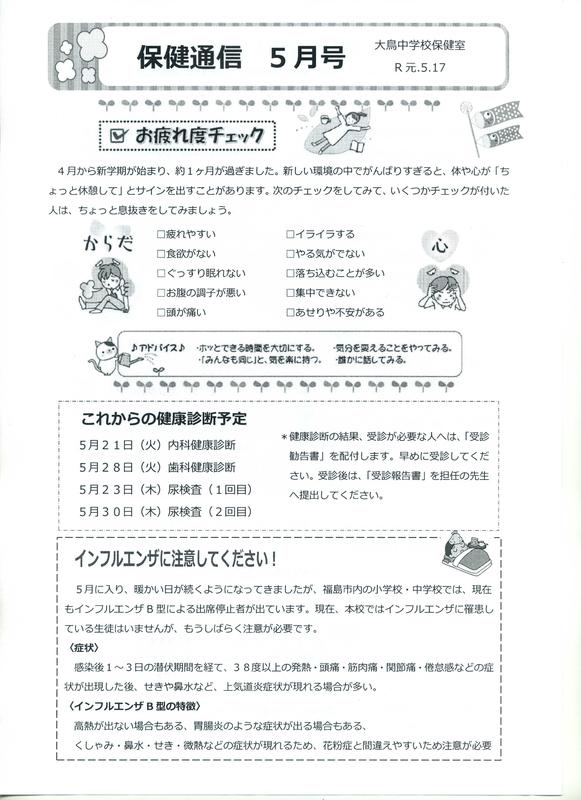 2021年5月6日 17時45分学校だより第12号
