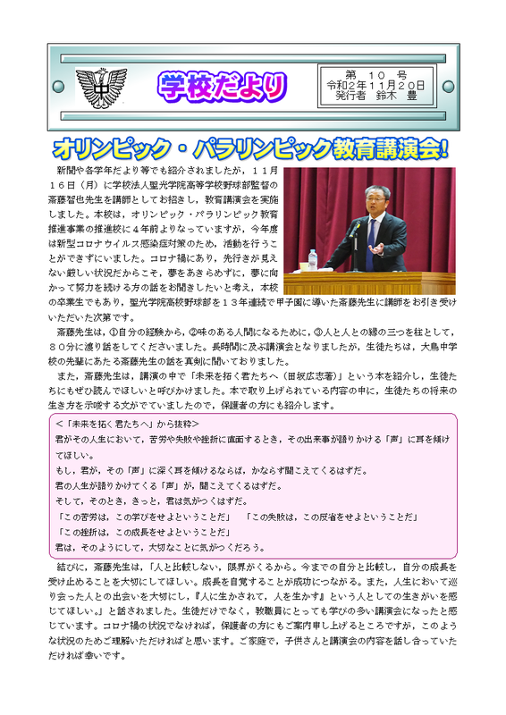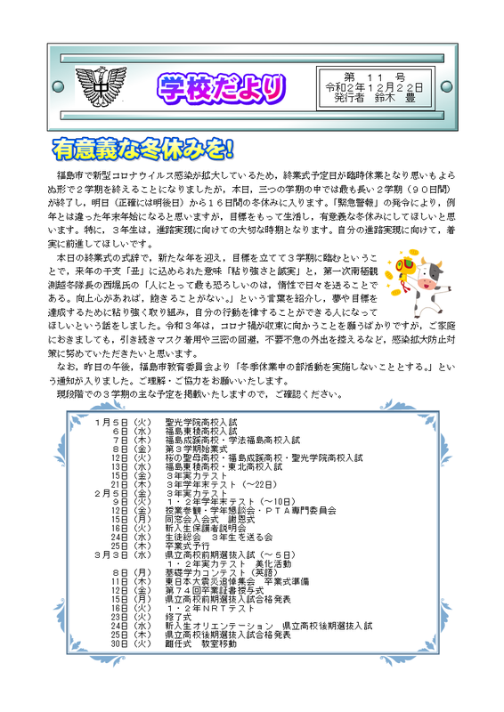 2020年12月24日 09時05分学校だより第10号