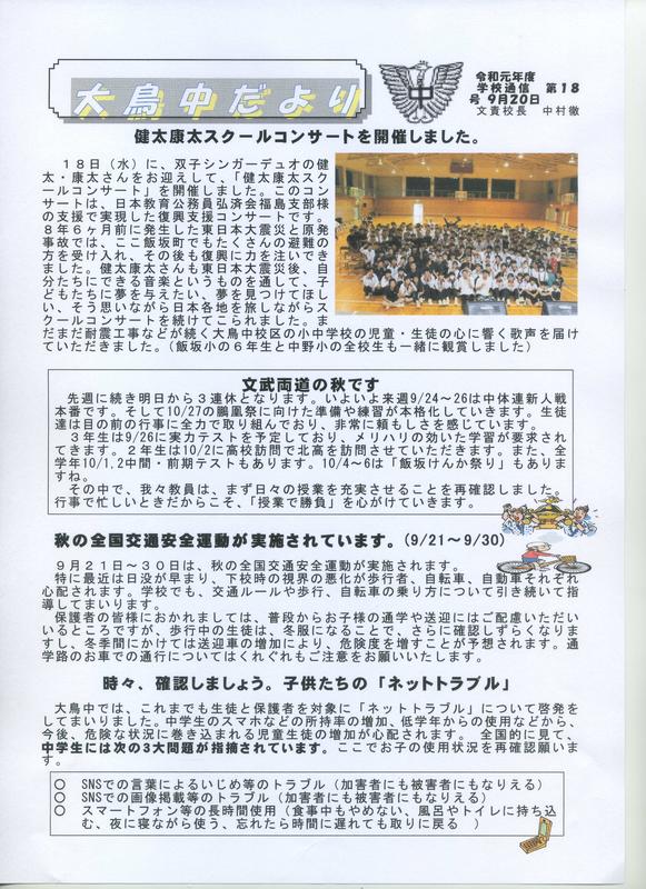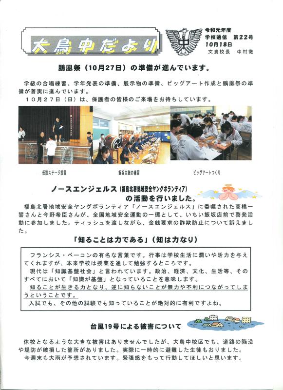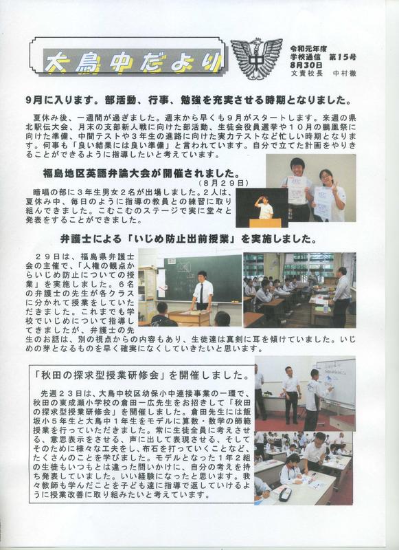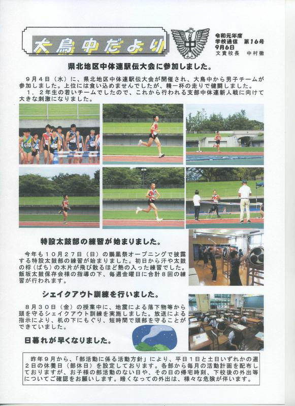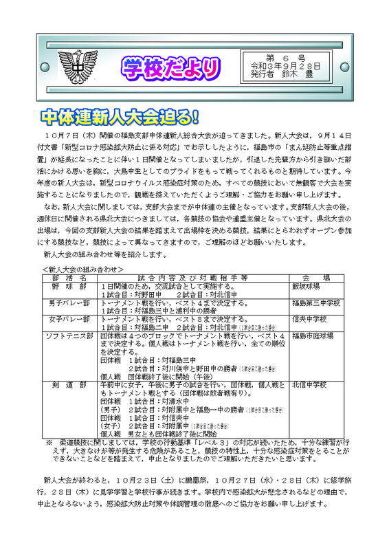 2021年10月16日 13時55分学校だより 第6号