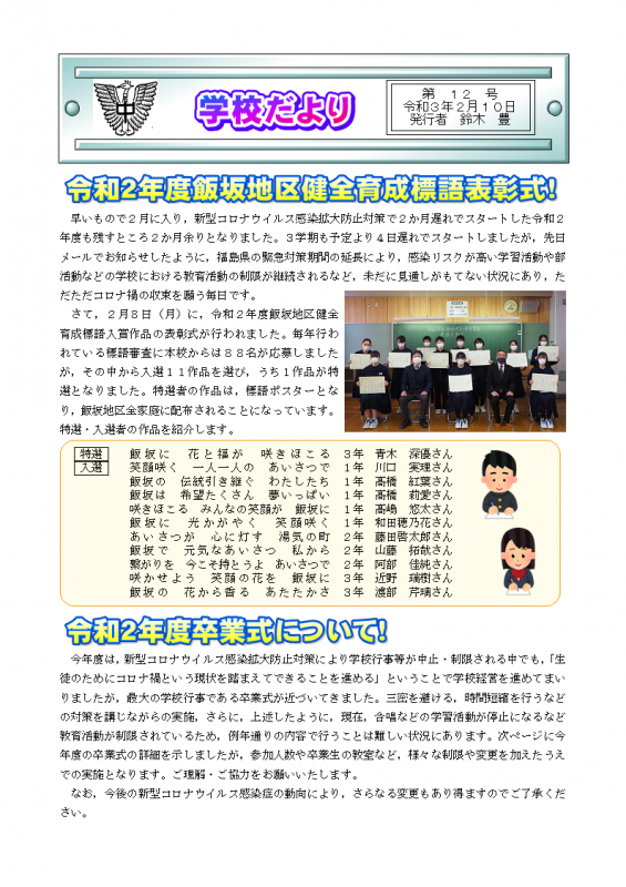 2021年2月16日 07時48分学校だより第11号
