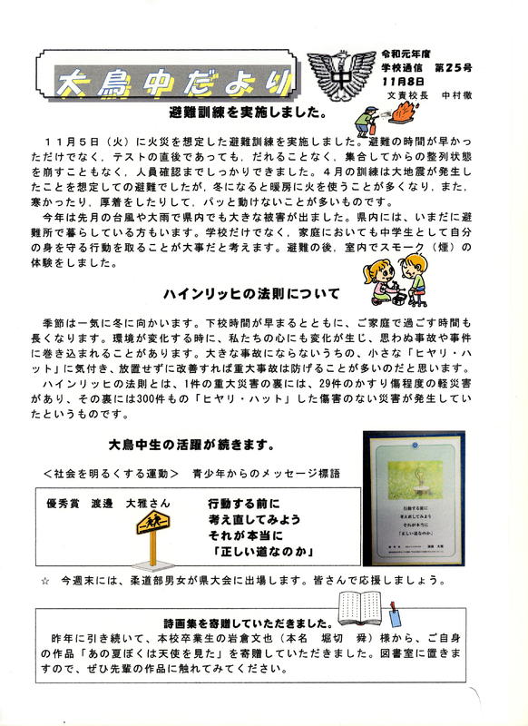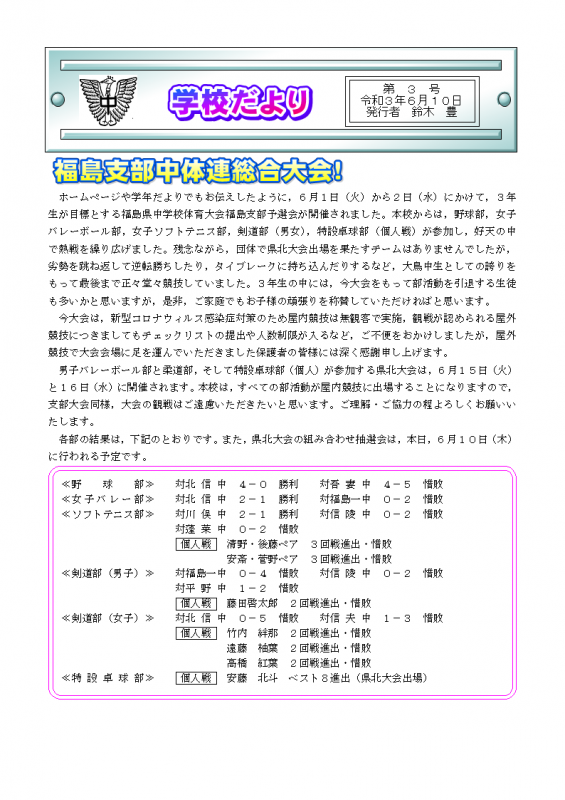 2025年6月6日 09時28分学校だよりの掲載について。どうぞご覧ください。