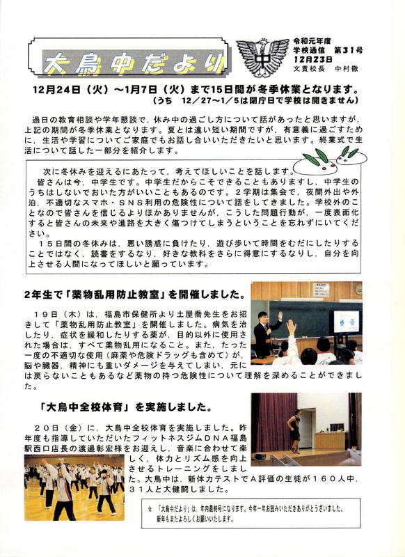 2020年12月24日 09時01分学校だより第9号