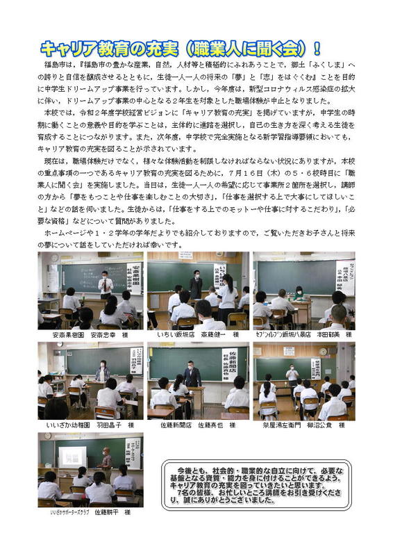 2025年6月20日 09時25分進路だより第5号の掲載について。どうぞご覧ください。