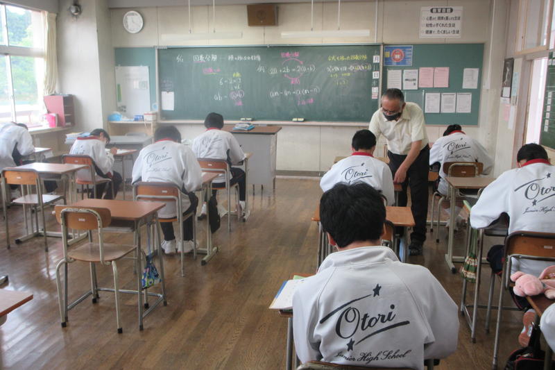 3-1の3校時は数学の授業でした。因数分解の「積の形になおす」という課題に取り組みました。解き方の確認をした後、基本の問題プリントに真剣に取り組んでいました。「わかった」という声も聞こえてきました。