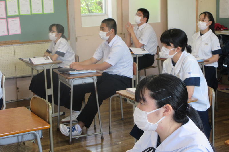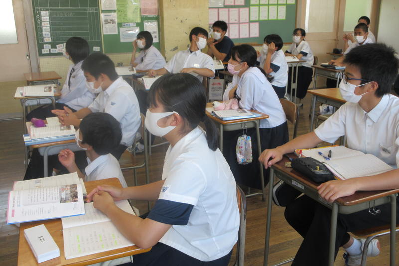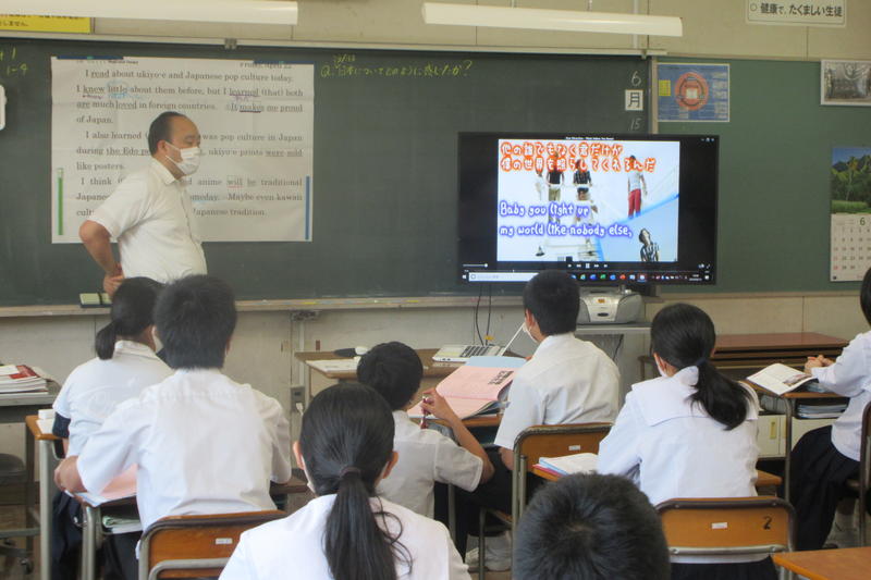 3-2の2校時は英語の授業でした。「光太は日本についてどのように感じたでしょうか」という学習課題に取り組みました。特に、「make」の使い方や意味について理解を深めました。また、ICTの活用により、生徒の興味・関心が高まり、さらに、学習のポイントが分かりやすい授業でした。