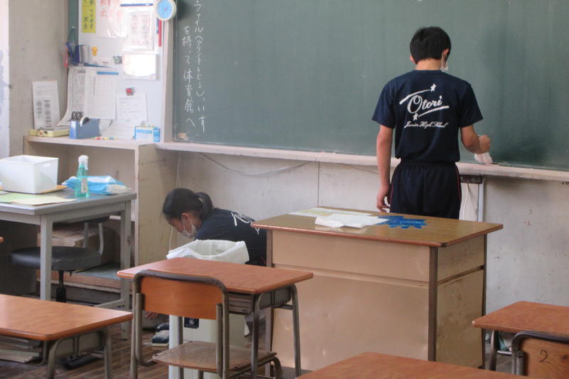 授業終了後は、10分間の無言清掃に取り組んでいます。