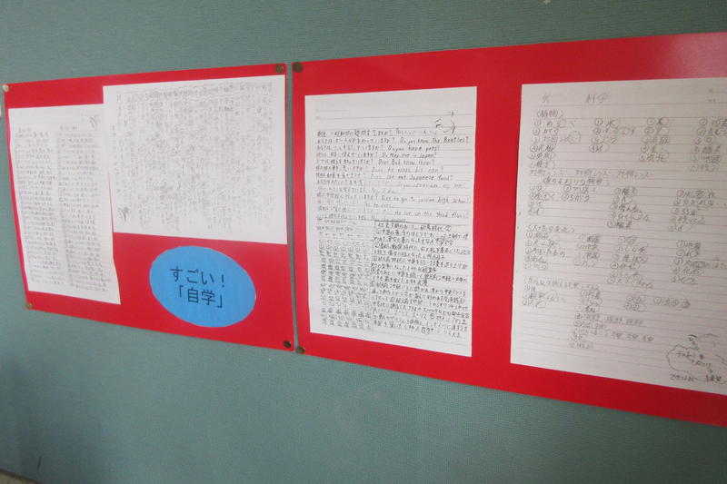 1-1教室には、自主学習の取り組みについて紹介されています。