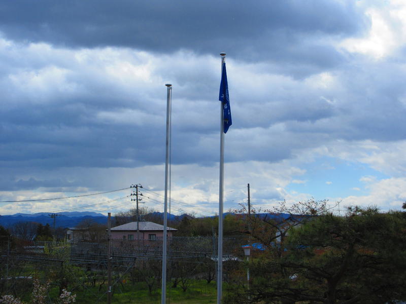 毎日,生活委員会委員長が掲揚する校旗も久しぶりに掲げました。(無風のため,きれいに広がってはいませんが・・・)