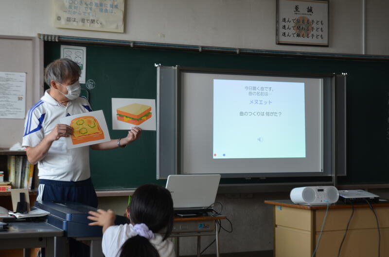 2021年9月9日 12時38分今日は3年生の教室を訪問しました。音楽「メヌエットのよさをさがそう」の授業がおこなわれていました。