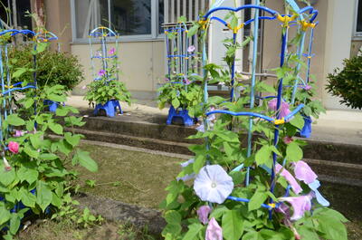 学校そばの畑の桃も色づいてきました。また、学校花壇や学級園の草花・野菜もどんどん伸びています。花や実をつけているものもあります。本校では、この後に水泳記録会が予定されています。いよいよ夏本番が近づいています。夏休みの前に、しっかり学習や生活のまとめに取り組んでまいります。