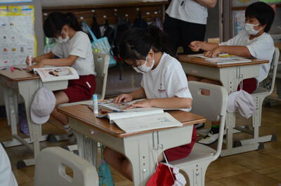 今日は登校する児童の姿がいつもの月曜日より元気に感じられました。あと、一週間ちょっとで夏休みになります。