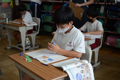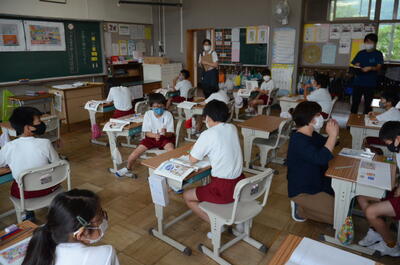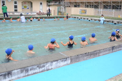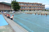 14日の3・4校時は1・2年の校内水泳記録会が行われました。自分のめあてに向かって、水中宝拾い・水中かけっこ・ビート板バタ足・自由形(10m 25m)の種目に一生懸命取り組んでいました。これまでの体育の授業で練習してきたことをそれぞれ出すことができたようです。1年生も2年生もとても頑張りました。