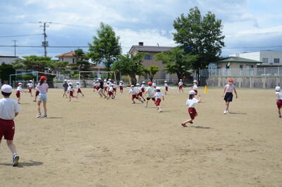 6にちのぎょうかん、うんどういいんかいがかんがえた すぽうつしゅうかいがおこなわれました。こどもたちはおにごっこをやり、たのしいじかんをすごしていました。
