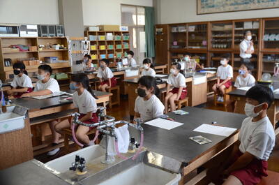 3・4年生の社会科の学習では、福島地方水道用水供給事業団の方においでいただき、すりかみ浄水場について教えていただきました。私たちが使っている水道水も多くの方の働きによって私たちのもとにくることを学びました。これからも水を大切に使っていきたいと思います。