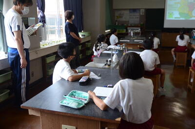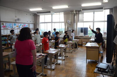 1日は新しいEAAの先生が5・6年の外国語科の授業に入りました。これまで福島市内でいろいろな面から英語教育に携われた先生とともに、楽しく親しみながら英語を学ぶ活動が行われました。