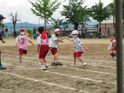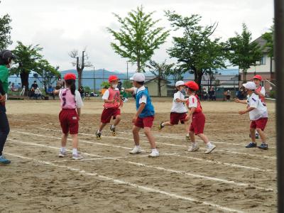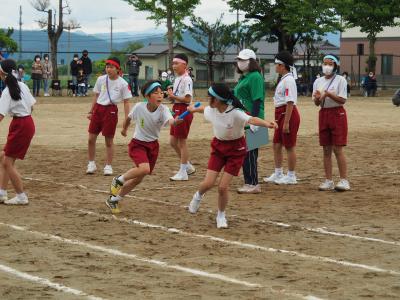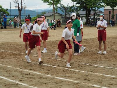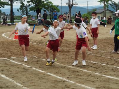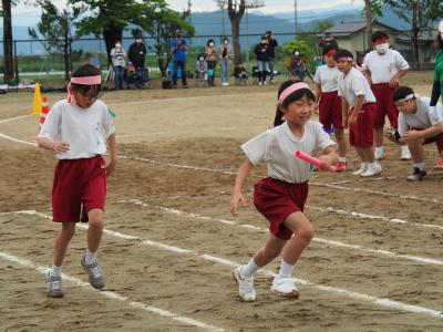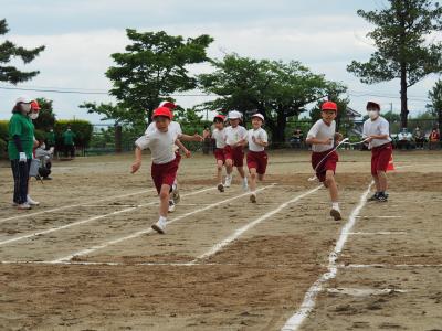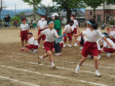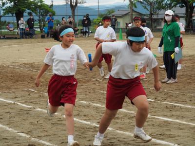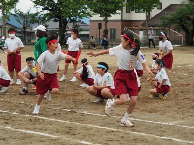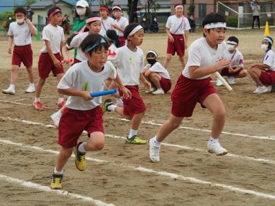 1年生の素晴らしい開式の言葉から始まり、子どもたちの意気込み一杯の開会式でした。ラジオ体操が終わり、感染防止に気をつけながら競技が始まりました。低学年50m走、中学年100m走、高学年150m走、下学年紅白玉入れの熱戦の様子を写真でお知らせします。