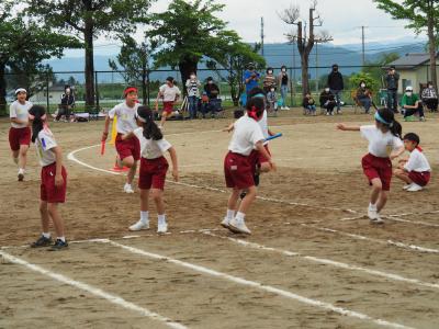 どの種目でも、最後まで粘りづよく走り競技する子どもたちの姿が立派でした。また、チームでコーンのまわり方を工夫するなど協力している姿も素晴らしかったです。また、勝敗を素直に受け入れ相手をたたえる姿にも感動しました。全員が素晴らしい運動会にするために力を合わせて頑張りましたので、最後の最後まで白熱した運動会になりました。優勝の行方は最終競技の紅白対抗上学年リレーで決まりました。まさに『This is OZaso!!』これが大笹生小学校の運動会だと胸を張れる素晴らしい運動会でした。その様子を写真でご覧ください。