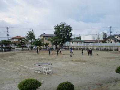 明日は運動会です。今日は雨。校庭にも水たまりができています。この後、天気がよくなることを願うばかりです。