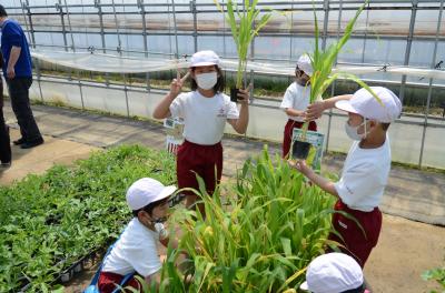 全員の会計が済んだら、子どもたちは、大事に大事に苗を持ちながら学校へ帰ってきました。しっかりお世話をして大きく育てて、おいしい野菜がたくさん実といいですね。
