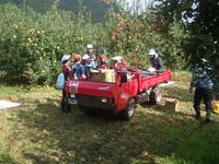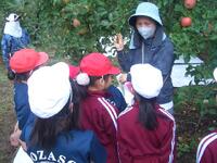 今日は、3年生が近くのリンゴ農家さんの畑に出かけました。総合的な学習の時間に、「大笹生地区で伝統的に行われている果樹栽培について知り、ふるさと大笹生への興味関心を高めること」をねらいとして取り組んでいます。