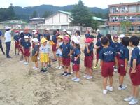 第2学期が始まるに当たり、避難訓練を実施しました。想定は理科室からの出火です。子どもたちには事前予告無しでの実施としました。校内のベルが鳴り、アナウンスが流れると、校庭で遊んでいた低学年の子どもたちは、すぐに状況を察知し、その場にしゃがみ込み状況を確認する姿が見られました。その他の学年の子どもたちも所定の避難場所に静かに集合することができました。