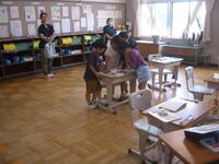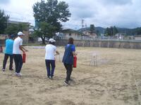 全体指導の後には、飯坂消防署の方をお招きし、消火訓練も行いました。水消火器を使い「火事だ!」の声を出しながら、消火器を操作しました。飯坂消防署の方からは、校舎平面図を用いた机上の避難訓練は火災想定場所を何度も変えることができ、避難経路や場所をどこにするか考える練習になるので大変有効であること。避難の際、自分の担当が決まっていても、実際には担当者が不在なことも想定し、誰でもが違う仕事にも対応できるような訓練も必要であることをご指導いただきました。