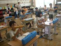 今日は、陸上大会に参加する児童の練習日です。校庭は日差しがが暑いので、体育館で実施をしました。簡単な準備運動の後、ラダーを用いての敏捷性を高めるトレーニングを繰り返し行いました。