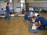 本日、今年度の「心肺蘇生」講習を実施しました。飯坂消防署から唯木様においでいただき、AEDの使用の仕方を中心にご指導をいただきました。2回に分け、全職員が研修を行いました。AEDの音声に従って、パッドの装着や心肺蘇生の方法について学ぶことができました。