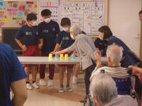 今日、地域にあるグループホーム生愛レジデンスを6年生が訪問しました。子どもたちが考えたゲームを、おじいさんやおばあさんにチャレンジしていただきました。玉入れやコップの中のキャップ探しに取り組んでいただきました。皆さん、楽しみながら一生懸命ゲームに取り組んでいいただき、子どもたちも、達成感を味わうことができました。