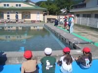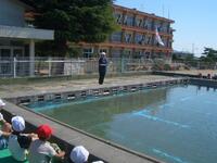 今日は、朝の時間に、プール開きの会を行いました。校長と体育主任からの話の後、それぞれの学年の代表から、水泳学習に対する目当て発表がありました。きれいな水がいっぱいにたまったプールを目の前にして、子どもたちは、プールに入りたい意欲がますます高まったようでした。