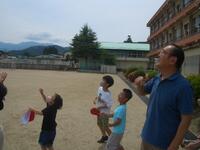 モンシロチョウは子どもたちに見守られながら、元気に、空高く舞い上がっていきました。風に乗って飛ぶモンシロチョウを追いかけましたが、なかなか追いつくことはできませんでした。