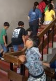 本日、引き渡し訓練を行いました。「大雨により、八反田川が氾濫し、浸水災害の恐れがある」という想定の下、子どもたちは、緊急放送の指示に従い、校舎3階へ整然と避難することができました。