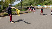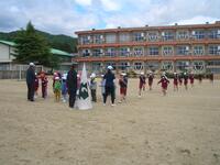1年生を迎える会では、1年生の歓迎会の後、縦割り班ごとにリレーを行いました。1年生から6年生まで全員が思いっきり走り切りました。