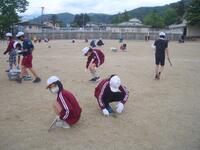 今日は、愛校活動として、校庭の草むしりを行いました。初めに、草むしりの注意を聞いてから、全校生で行いました。校庭の草は、硬い地面に生えているため、子どもたちも一生懸命に頑張って取り組んでいました。