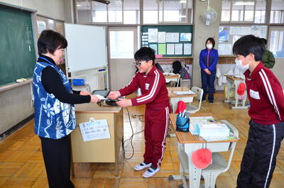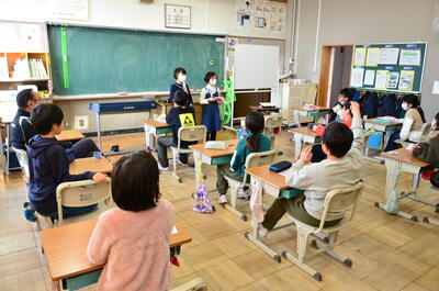 22日はEAAの先生の本年度最終出勤日でした。最終日も、楽しいアクティビティに子どもたちも楽しみながら取り組み、英語やジェスチャーで積極的に表現し、友だちや先生の表現を理解しようと頑張っていました。6年生教室での授業が終わりに近づくと、EAAの先生から英語でお別れのお話がありました。子どもたちはこれまで学んだことを使って一生懸命理解しようと頑張っていました。EAAの先生のお話を終わると、6年生の代表が全員の心がこもった感謝のメッセージを手渡しました。