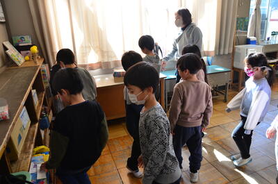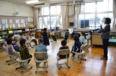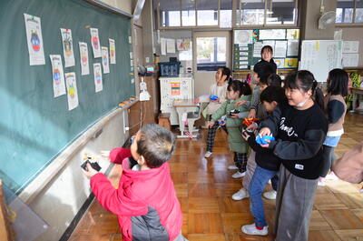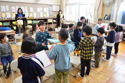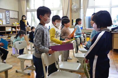 また、1年教室では、入学予定児と本校1年生の交流活動が行われました。1年生は、来年度の1年生と仲良くなるため、一生懸命に準備してきました。教室をのぞいてみると、すっかり打ち解けてフルーツバスケットやじゃんけん列車などのゲームを楽しんでいました。最後に、1年生から入学予定児に心のこもったお手紙が手渡されました。受け取った入学予定児の表情には、うれしさと学校に対する期待感が浮かんでいたように感じました。1年生も交流会の企画や運営をする姿に成長を感じます。素晴らしい交流会でした。