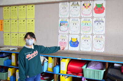 また、自分の追い出したい鬼を発表している学級もありました。聞いておりますと、忘れ物の鬼、いじわるの鬼、うそつきの鬼、寝坊の鬼、宿題やらない鬼、泣き虫の鬼、怒りんぼの鬼など、様々な鬼が出てきて、自分のことをきちんと見ているのだと感じました。鬼の発表だけでなく、怒りんぼの鬼を追い出すために「怒りたくなったら3回深呼吸をします。」と追い出すための手立ても考えていることに感心しました。