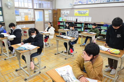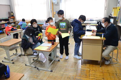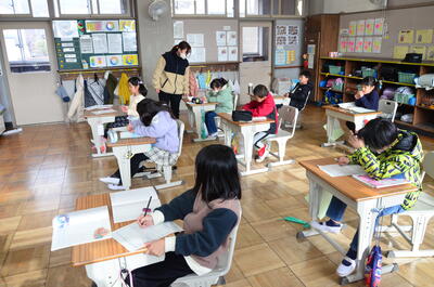今朝は雪が舞う寒い朝となりました。ですが、子どもたちは、それぞれの教科の学習に、先生とともに、一生懸命取り組んでいます。