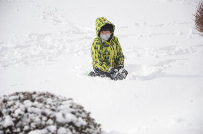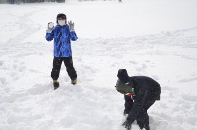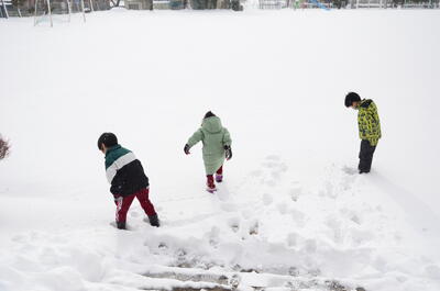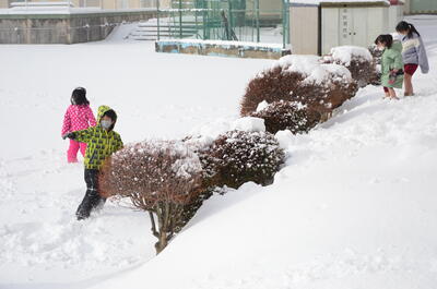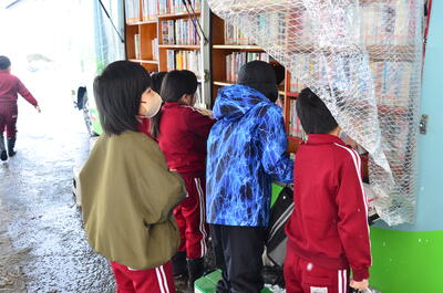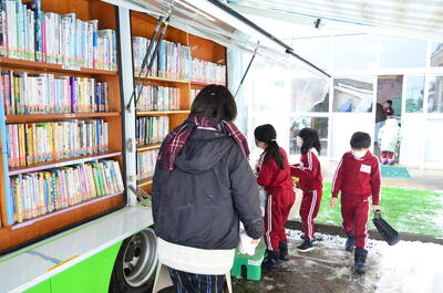 日中も雪が降り続き、強風が吹いた時は地吹雪で白一色となる状況でした。しかし、移動図書「しのぶ号」はそのような状況でも本校に来てくれました。2時間目の休み時間、子どもたちは自分の興味関心にあった本を一生懸命探していました。また、誰も足跡をつけていないまっさらの雪に飛び込んで遊んでいる子どももいました。雪に負けない子どもたちです。