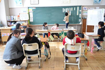 子どもたちの学力向上のためには、私たちの授業力を向上させることが大切です。昨日は授業力向上を目指して、2年生教室で学級活動の授業が行われました。議題は「冬のうんどう会をしよう」です。「みんななかよく、体があたたたくなる運動会」にするために話し合いが進められました。まず、何をやるかについて話し合いました。ドッジボール、けん玉リレー、おにごっこ、フラフープ、なわとびなど多様な考えが出されました。2つの運動を行うのですが、ドッジボールはみんなの意見が一致したので、実施種目に決まりました。もう1種目を決めるため、それぞれが賛成や反対の理由を述べています。一人ひとりの思いがあるので、折り合いをつけて合意形成をするのはなかなか難しいようです。それでも話し合いは一人ひとりの思いを大切にしながら進んでいきました。しばらく話し合うと、「すべての種目を取り入れた障害物競争にしたらよいのではないか。」という折衷案が出されました。その時間では結論が出ませんでしたが、2年生の子どもたちが楽しめる運動会にするため、多様な考えを出し、その考えを認め、大切に話し合っていた姿が印象的でした。