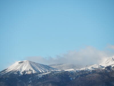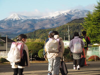 今朝は冷え込みました。西のほうを見ると吾妻山はきれいな雪景色。子どもたちは寒さに負けず、元気に登校してきました。
