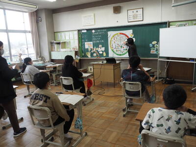 今日は給食センターから栄養教諭の先生にきていただき、5学年で食育の授業が行われました。「なぜ、いろいろなものを食べる必要があるのか?」という問題意識をスタートにして、食について考える授業です。子どもたちはバランスの取れた食事の必要性を「栄養のため」「成長のため」と捉えました。その後、主に3つに分類された食品について学びを深めていきました。