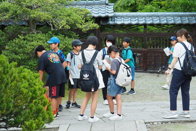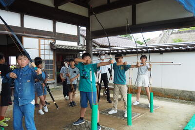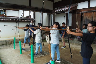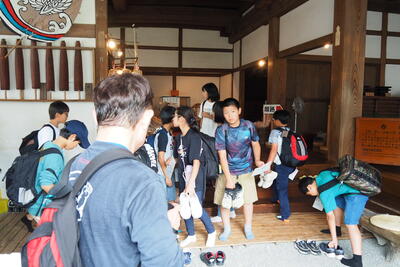 いよいよ最後の見学です。日新館に入り、江戸時代の武士の子供がどのような環境で学習していたのかを学びました。弓道の体験もしました。什の掟についてお話を聞いたことは子どもたちも生活に活かしていけると思います。
