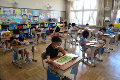 朝の様子をお伝えします。学級の朝の会を終えると読書タイムに取り組んでいました。集中して読書に取り組む姿は素晴らしいと感じました。